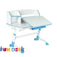 Регулируемая детская парта FunDesk Amare II – эргономичный, регулируемый по высоте, с современным дизайном и навесной полкой стол для вашего ребенка. Наличие полок над столешницей увеличивает рабочее пространство, создавая дополнительное место для хранения книг и канцелярских принадлежностей. Наклоняемая до 25° рабочая поверхность дает возможность выбрать максимально удобный угол наклона для письма, чтения и рисования. Антибликовое покрытие столешницы защищает глаза вашего ребенка от усталости. Благодаря многоступенчатому механизму регулировки высоты парта «растет» вместе с вашим ребенком. Наличие колесиков позволяет легко перемещать парту, не повреждая пол.