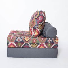 Описание: Изготовлен на основе поролона, чехлы съемные, матрасик на синтетическом волокне спрятан в валике, раскладывается в спальное место. Поставляется в упаковке из полиэтилена.
