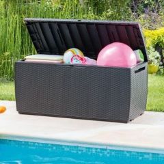 Компания KETER (Allibert, Jardin, Curver) представляет вашему вниманию большой выбор уличных сундуков из пластика. Вы можете выбрать сундук для дачи не только нужного размера, но и стиля. Мы предлагаем купить сундук из пластика имитирующего плетение под ротанг, или пластика стилизованного под дерево.