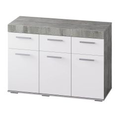 Светлые фасады, стильный корпус в цвете метрополитан грей, лаконичные хромированные ручки – все это про модель комода Инстайл из одноимённой мебельной коллекции.